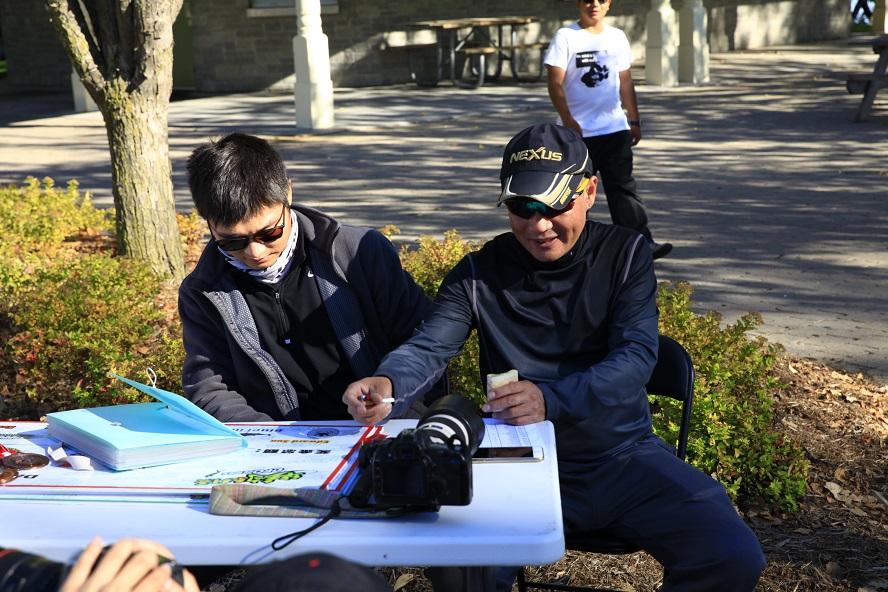下午三点刚过,距离比赛结束还差半小时,已有数个船队提前返回Belleville公共码头附近水域作钓,尝试着在最后一刻能够钓到更大的惊喜。还差十分钟比赛结束,参赛船队开始向负责Check in的1号船船长Jasper Zhang报到。此时的参赛钓手一见面第一句话,都是相互寻问着对方的战绩,但很多船队都故意低调地把自已的鱼获重量说得很低,即使钓到了18磅以上的大鱼袋,也会谦虚地说着“假话”。