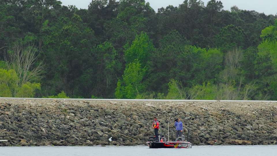 然而,比赛开始后,很多参赛钓手都发现今天的康罗湖已让他们感觉到是一个完全有别于试钓时的比赛湖。当天的天气预报显示,风速会在每小时15至25英里左右,阵风达到30英里,风向为南风。而周六降至每小时10英里的西风,以及周日升至20英里的风速,又让不少人更看好大神级钓手KVD,因为这样的作钓条件更适合他的“劲爆钓法”和他的作钓风格。赛前KVD曾透露,通过试钓,他已在康罗湖选中了十几个钓点,都是诱饵shad出没的地方。