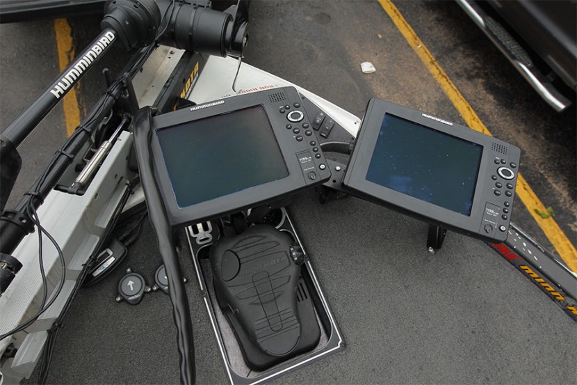 驾驶位置上放置了两个10寸的humminbird 1199探鱼器GPS。