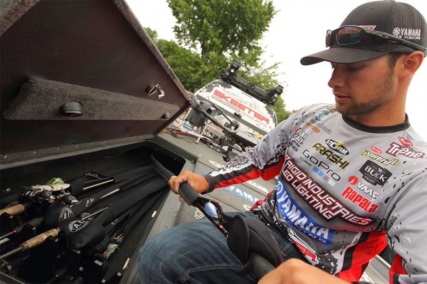 【华钓在线】记者大雷报道/4月21日 鲈鱼大师精英赛里近年涌现出一名杰出的年轻钓手:Brandon Palaniuk。 Brandon,1987出生在美国不太被人熟悉的爱达荷州(Idaho)的小镇拉斯德拉姆(Rathdrum)。他通过赢取了B.A.S.S. Federation Nation national champion获得参加2011年的鲈鱼大师经典赛的资格。当时这位美国中部的乡下穷小子是靠着乡亲们的捐助去参加的经典赛,而且没有像其他Pro一样入住酒店,他每晚都睡在自己皮卡的后备箱里。那一年,第一次出现在鲈鱼比赛高级殿堂的Brandon取得了第四名的好成绩。随后在2012年Brandon开始了他的职业钓手生涯,3年的时间里,他取得了2次鲈鱼大师精英赛的冠军,7次获得前十名的好成绩。接下来华钓在线带大家看看Brandon的船里面都有些什么。(图片源自bassmaster.com)