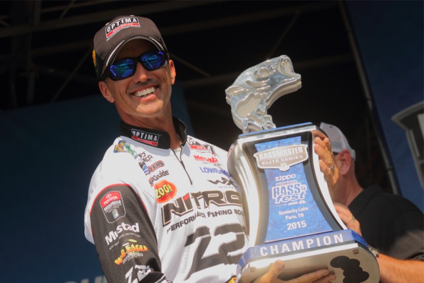 来自奥克拉河马州的Edwin Evers在最后一天钓获了25磅整的大袋子,总重量达到97-4,特别是一条8-11的大家伙为他奠定了胜局,成功的保住了第一名的位置,并第四次捧起了精英赛的冠军奖杯。Edwin获得了$103,000美元的奖金(3000美金为大鱼奖),同时也赢取了2016年经典赛的参赛资格。“这场比赛的胜利对我来说太宝贵了" 获得冠军后的Edwin对记者说,今年精英赛开赛以来,我的成绩并不理想,连我的老婆都对我提出了质疑,能不能获得明年的经典赛还是问号。他还开玩笑说这场比赛的胜利终于能让我在家有顿安稳觉睡了。