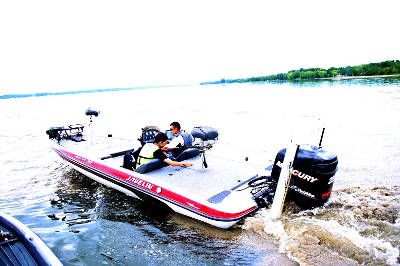 这是Barry Jia的五号船队,他的搭档也是华钓新人、知名新生代写手和钓手Eshew Chen。Barry的Skeeter去年曾帮他在NGTA米湖公开赛中钓获20多磅的小口和最大鱼6磅多的小口。他也是华钓群星中著名的老船长。