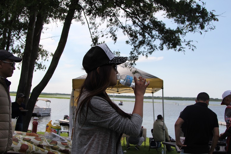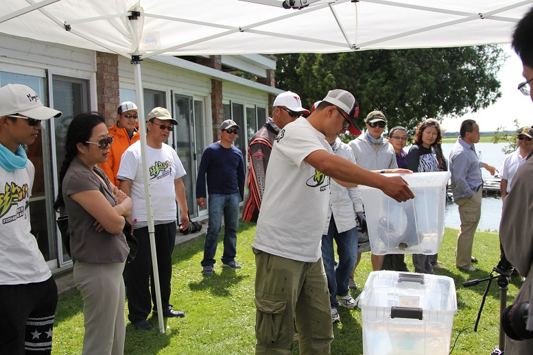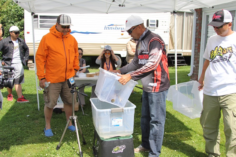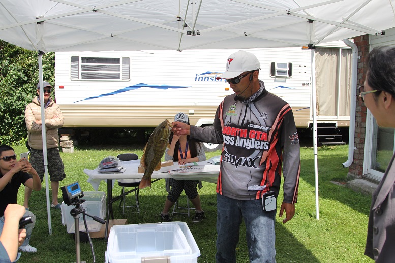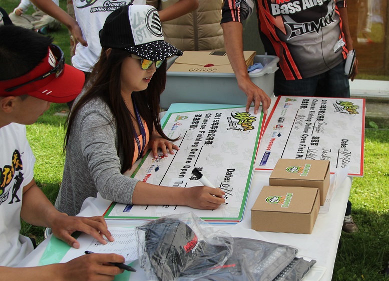 7月15日下午3时整,当所有参赛船队都准时返回Lunge Haven Cottages时,由华钓新人版主小叶子率领的义工团队已搭好称重帐蓬,Jeremy、Ricky和Bryant也开始为参赛钓手准备好丰盛的烧烤。制作华钓在线网站的A2A网络设计公司总经理陈茗女士,也特意从多伦多赶到现场帮忙。华钓团队成员Kirby Du也带着妻子和爱女前来捧场。