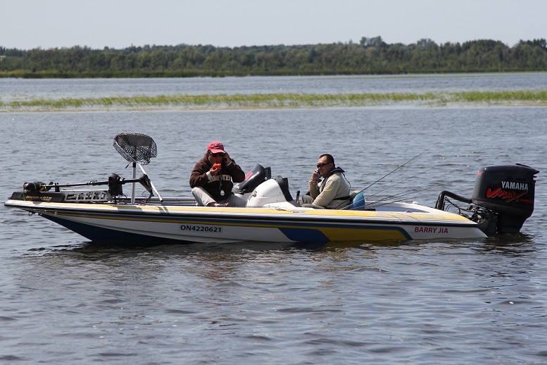 【华钓在线】记者千山报道/华钓公开赛第二场比赛的前一天,当各路记者冒雨赶到Lunge Haven Cottages时,接近每小时20公里的强劲东北风在鲟鱼湖湖面卷起白头浪,雨后的气温已降到10摄氏度以下。钓鱼人都知道同时也都忌讳的冷峰(cold front)天气,似乎要故意跟华钓公开赛的精英钓手们开一个不小的玩笑。