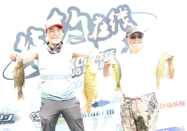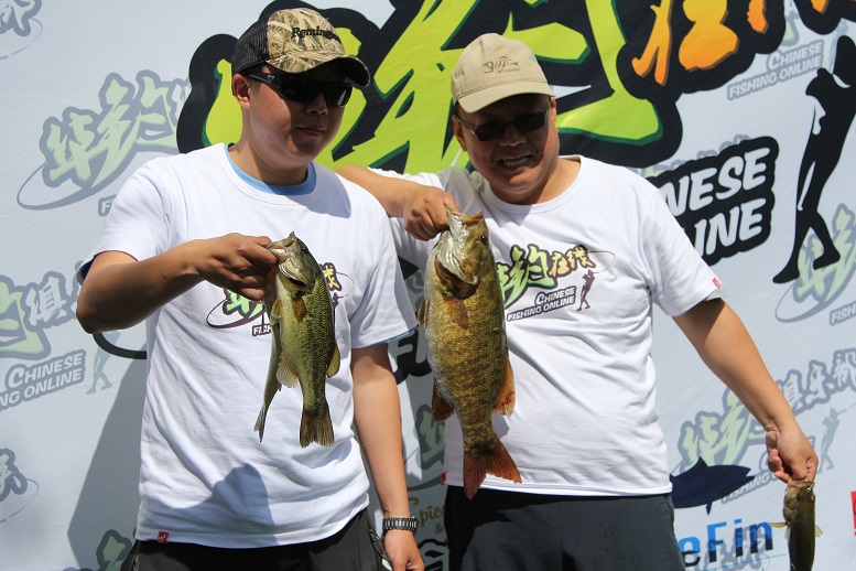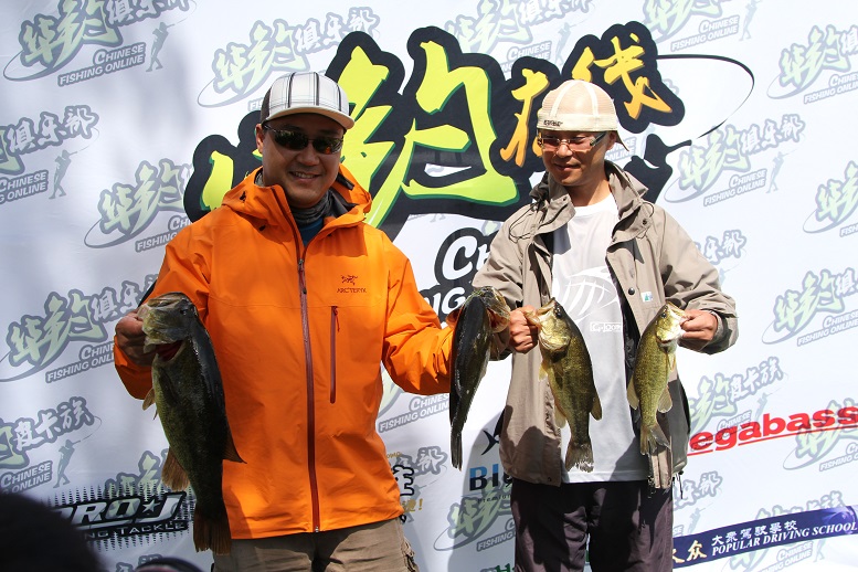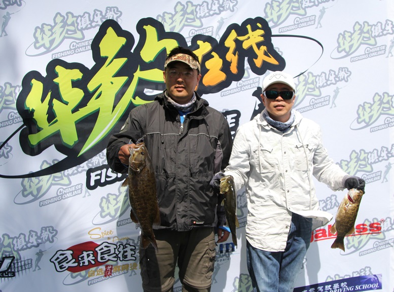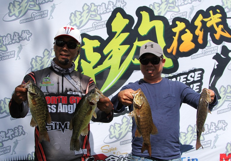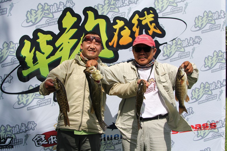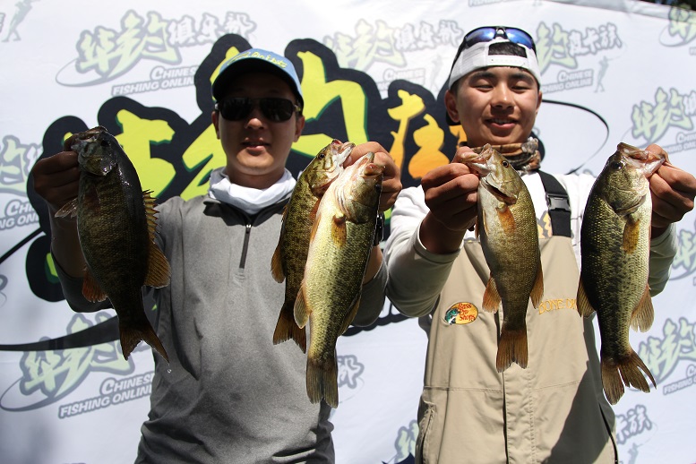 这是华钓群星中的议员钓手Han Dong和他的搭档Song Wu在展示鱼获
