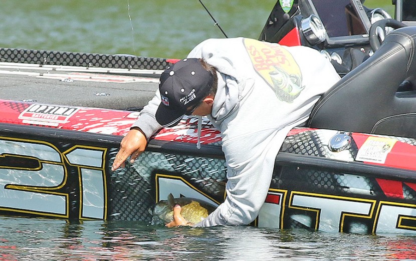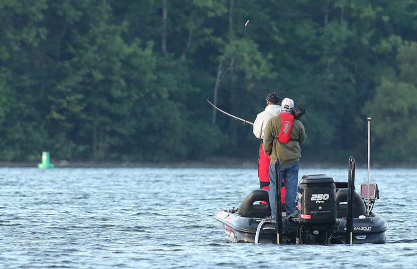 8月2日,星期天,连刮三天的大风,还有周末的暴风雨天气,终于有所好转。当天清晨,举办此次大赛的纽约州Evan Williams Bourbon一带的水面,终于平静下来。进入最后决赛日的12位职业钓手,在众多粉丝的注目下,在亲朋好友的助威声中,开始了他们的荣誉之战。
