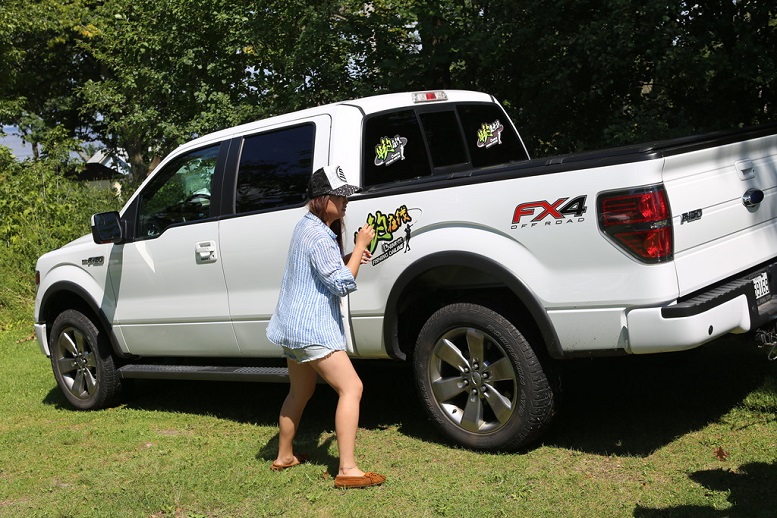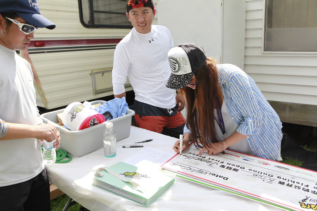 辛苦了整整一天的小叶子在华钓车贴上签名